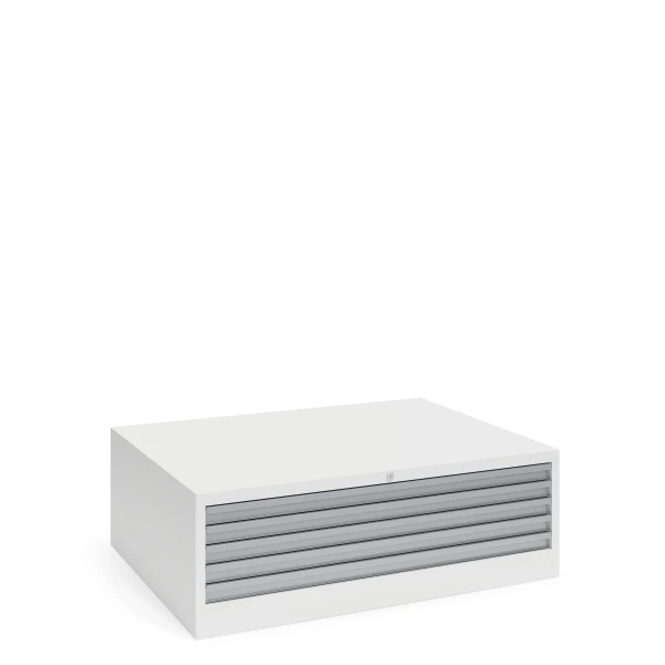 File cabinet with 5 drawers designed for horizontal storing of maps and plans in A0 size.