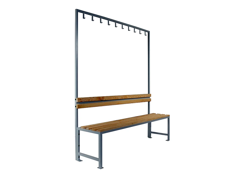 - 8 single metal hooks (in benches 1500 wide),