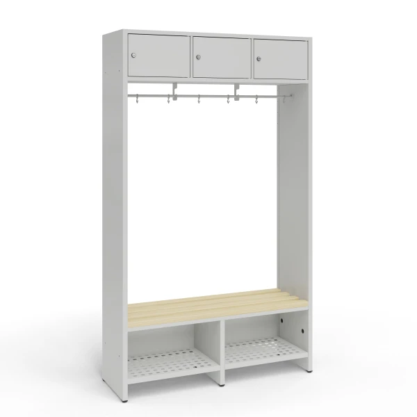 Cloakroom system with 3 compartments and shoe shelves