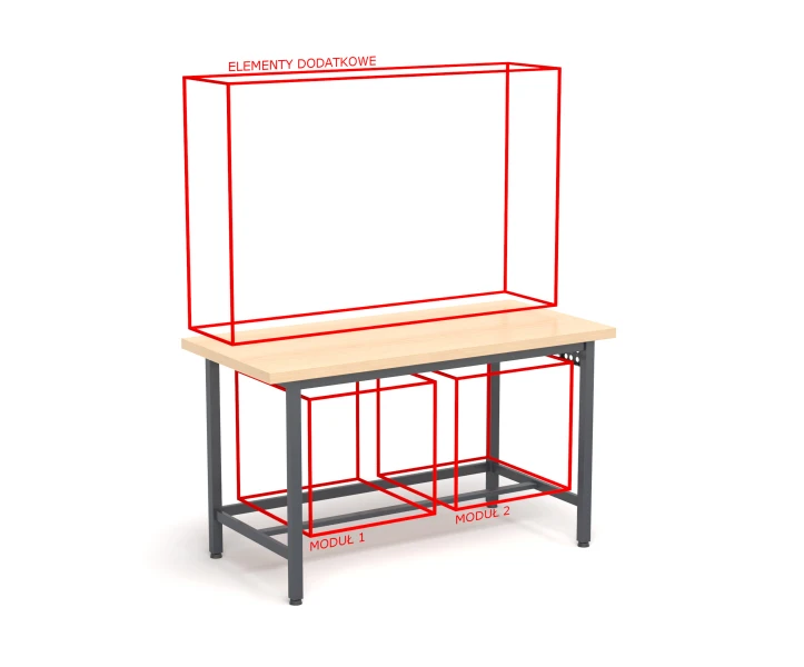 The top is covered with rubber with an edge preventing the tools from falling or with corrugated rubber. We can also install a plywood top in a metal frame, a plywood top covered with galvanized sheet metal or 1,5 mm thick inox sheet metal.