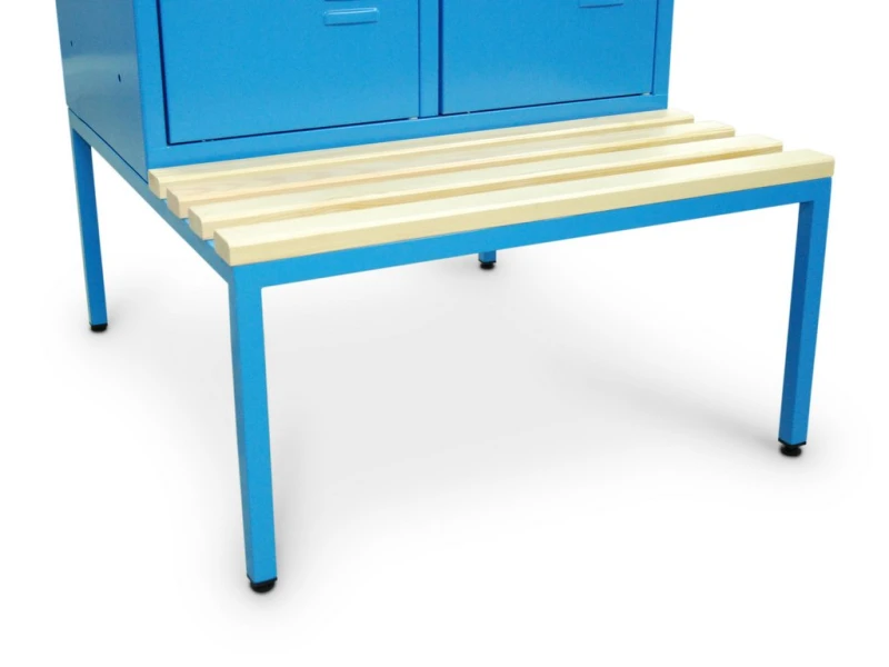 - Benches under the locker are installed on the metal frame suitable to place a locker on its top.
