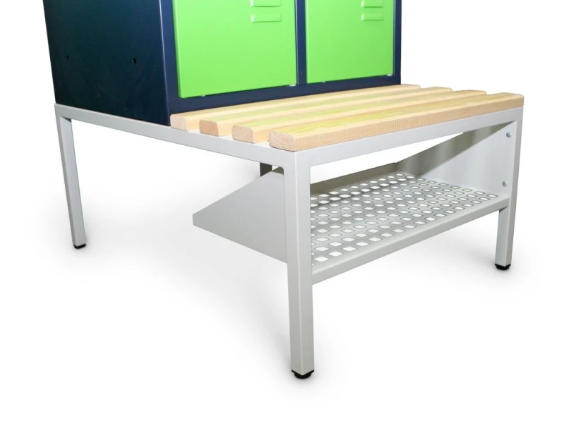 - Benches under the locker are installed on the metal frame suitable to place a locker on its top.