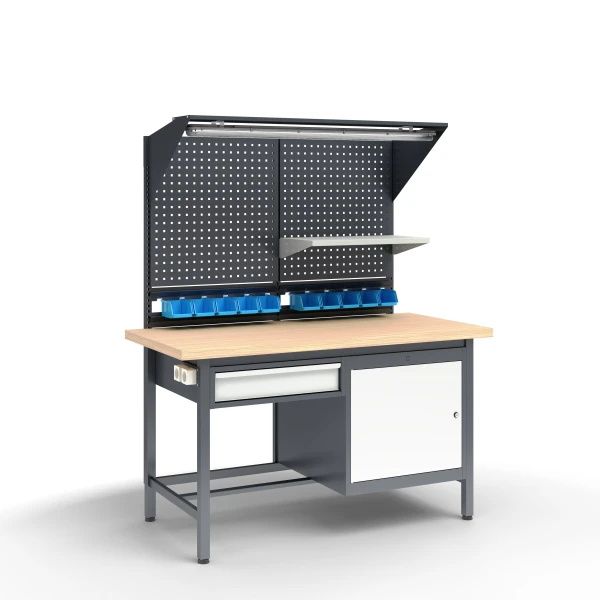 - the top of the workbench is made of plywood 40 mm thick +/- 4 mm,