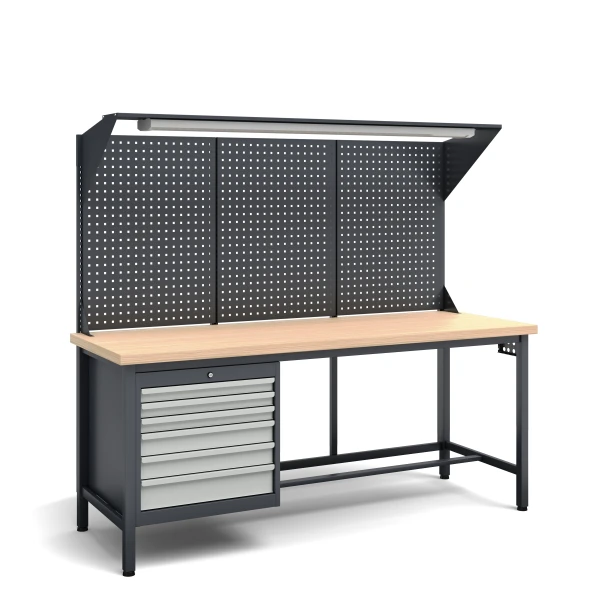 - perforated wall made of 3 panels, each with dimensions of [mm]: H 896 x W 629. Panels are attached to the table by means of mounting rails,