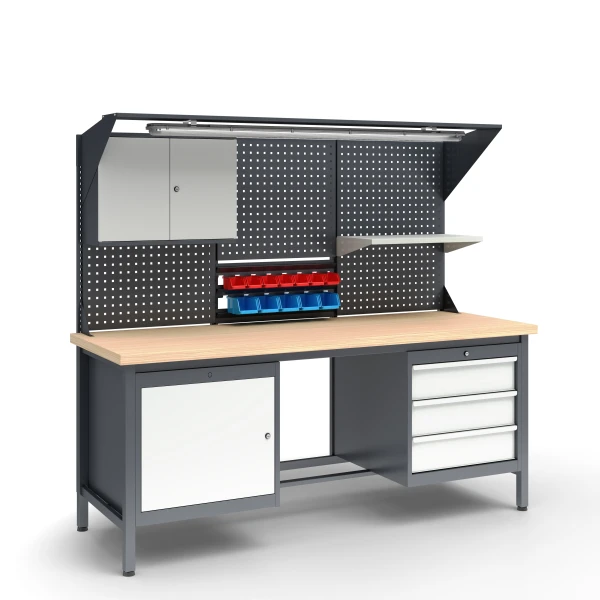 - the top of the workbench is made of plywood 40 mm thick +/- 4 mm,