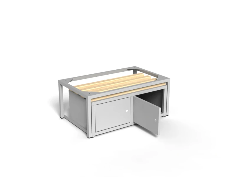 Retractable benches under the locker, with 2 lockers, comprise two elements: