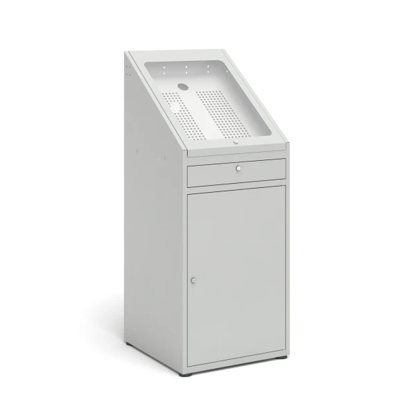 The upper door of the cabinet can be prepared for a touch screen (with a rubber seal).