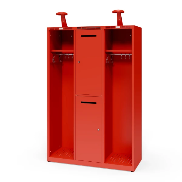 Three-colunm fire station cabinet for two firefighters