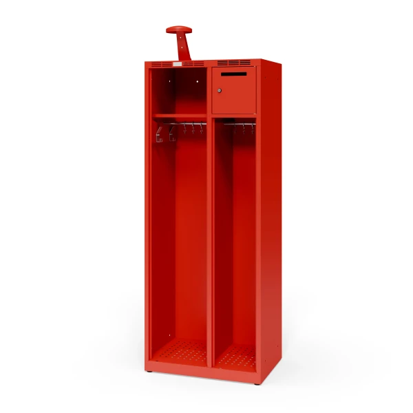 Two-colunm fire station cabinet for one firefighter with a lockable safe