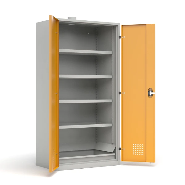 - 4 adjustable full shelves with edges on all sides, preventing hazardous substances from spilling outside the cabinet,